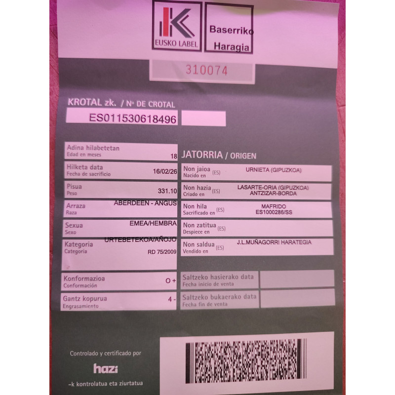 Txekor Euskal Okel Haragia. Oso zapore handiko haragia da, gomendagarria...